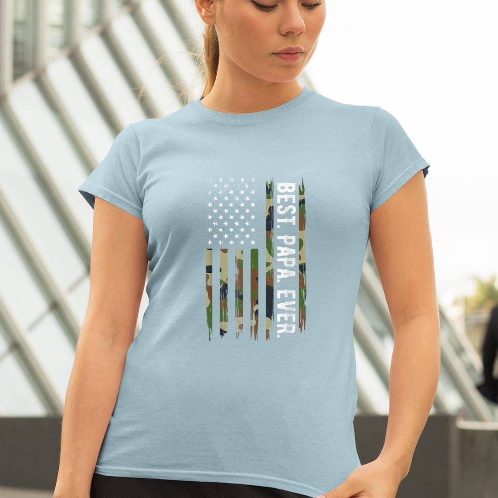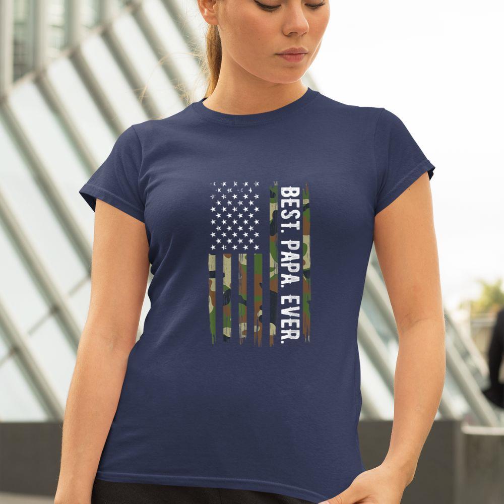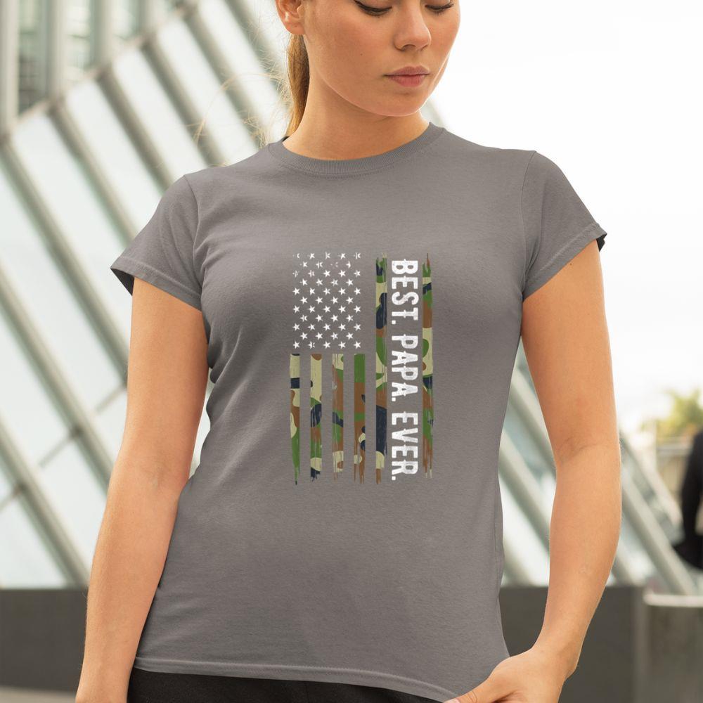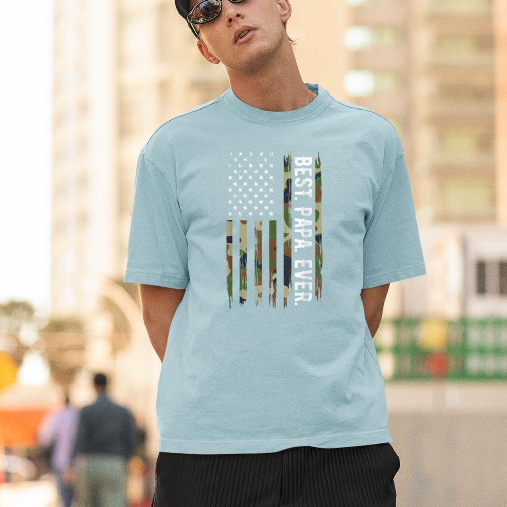 Pocateez Mens Best Papa Ever Camouflage US American Flag Gift Father’s Day Unisex T-shirt